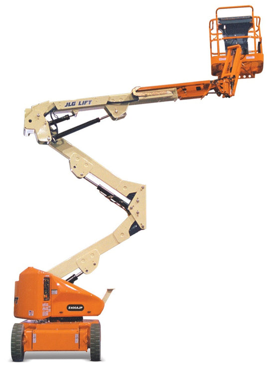 JLG E400AN 40' 2WD Articulating Boom Lift Man Aerial Platform Narrow chassis for greater mobility in congested work areas and the ability to travel through a standard doorway